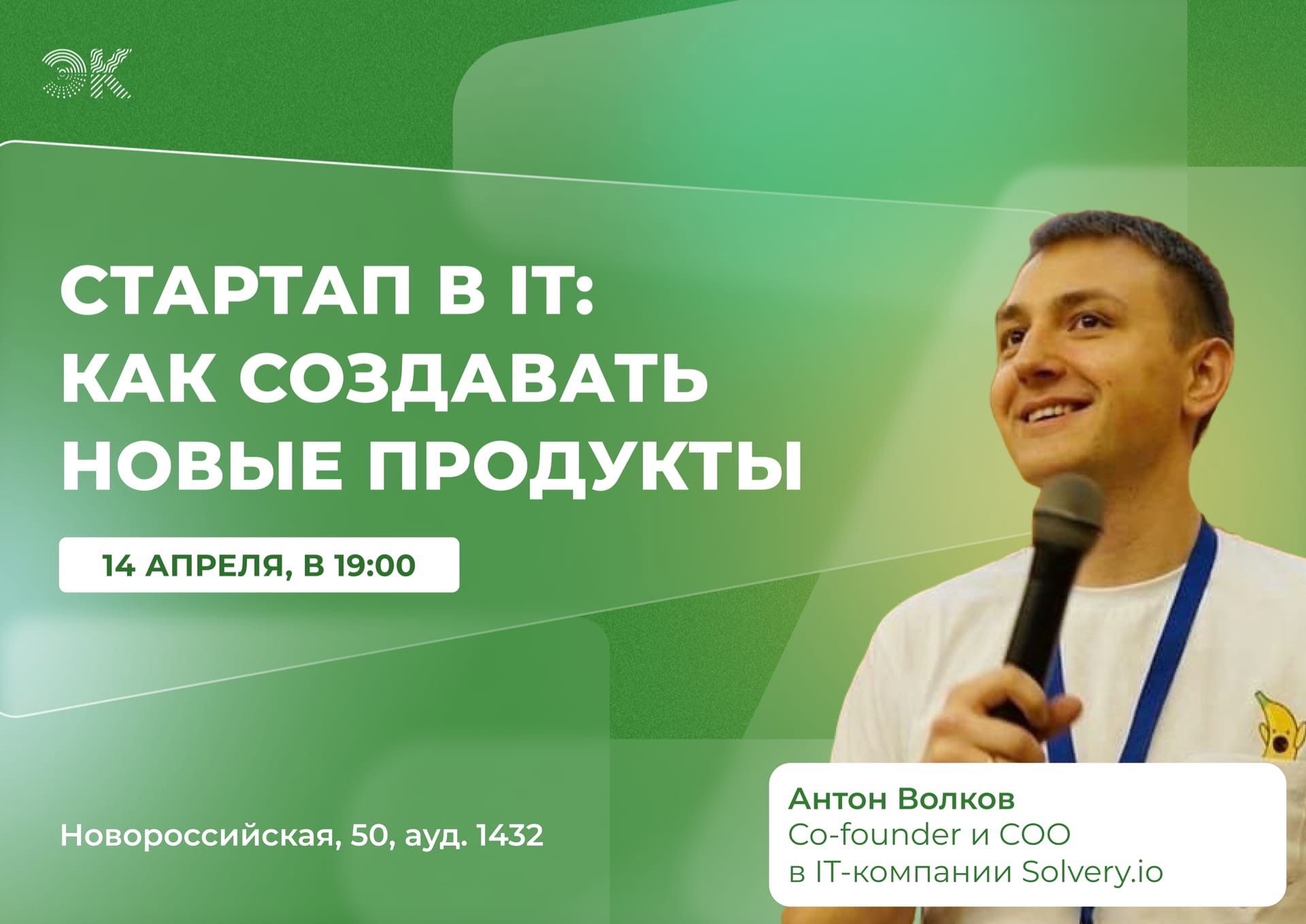 14 апреля в 19:00 ЭК проведёт встречу с Антоном Волковым на тему запуска компании в IT. На мероприятии обсудим: